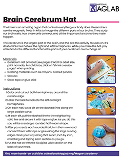 6. Put the hat on with the Occipital Lobe section on the back of your head and look in the mirror to marvel at your beautiful, amazing brain. (Snap a photo of yourself wearing your Brain Cerebrum Hat and tag us in it on Instagram @NationalMagLab).