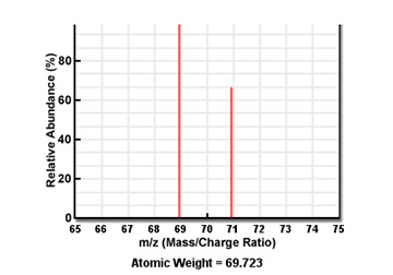 Mass spectrum reveals how many isotopes of a given element are to be found in a material.